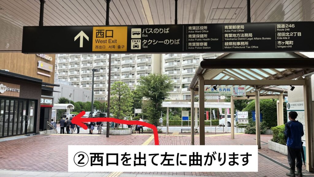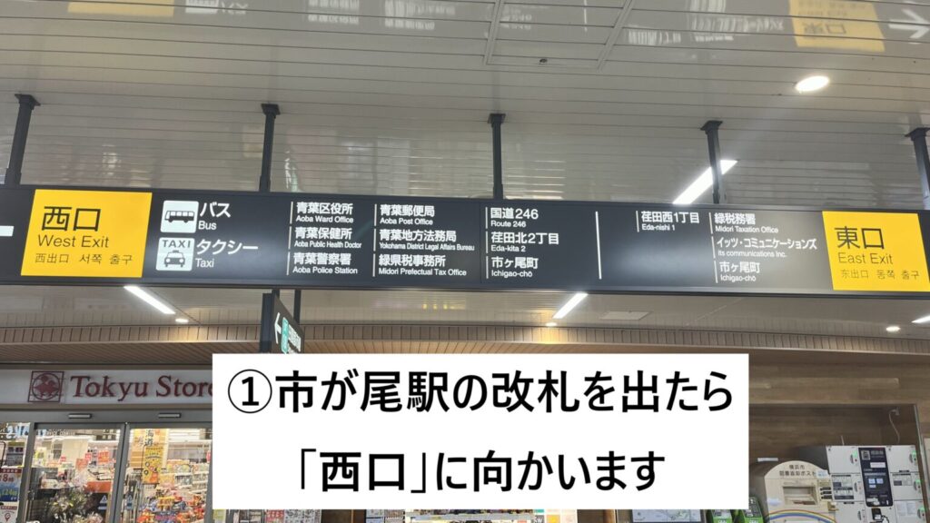 - 田園都市線「市が尾駅」の改札を出たら「西口」に向かいます